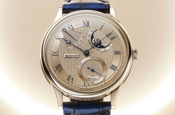 首先看到的是Classique 7235月相動力儲存手錶,它的靈感來自1794年問世的N°5懷錶,這只被視為寶璣經典設計雛形的作品,確立了品牌對機刻雕花面盤、藍鋼指針、偏心顯示佈局等美學原則的堅持,新作沿襲這份精神,將18世紀的美感轉化為當代的精緻比例。