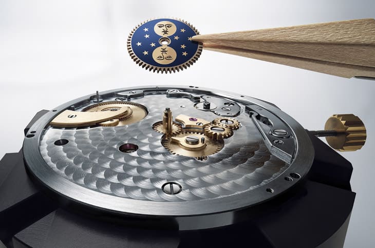 ▲月相盤上的人臉面孔造型與N°5懷錶如出一轍,顯示設於2點位置也頗為少見。