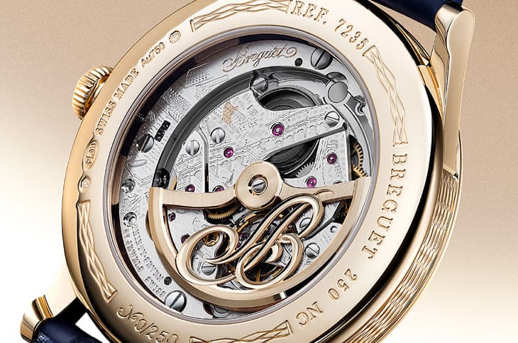 更令人玩味的是,當機芯全速運作時,擒縱輪會呈現交替閃現的1775與2025字樣——從品牌創立到今日的年份,在運作節奏中輪流閃現,象徵時間的流轉與傳承。機芯的擺輪橋板與夾板同樣施以手工倒角與拋光,體現寶璣的工藝底蘊,也獲得品牌自家「寶璣經典印記」(Breguet Hallmark)認證,確保每一只時計在準度、裝飾與道德製造標準上都達到最高層級。