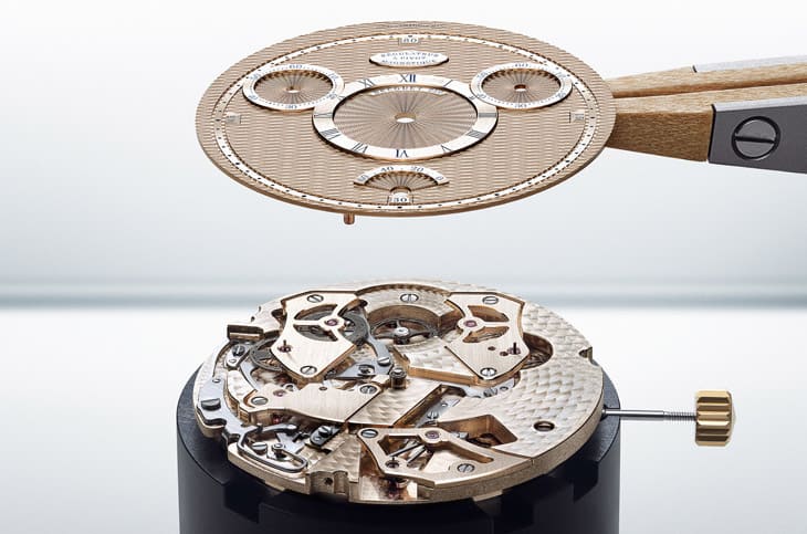▲Classique 7225面盤有中央時分顯示,雙小秒盤與飛返測時結構,呼應寶璣早期計時概念。