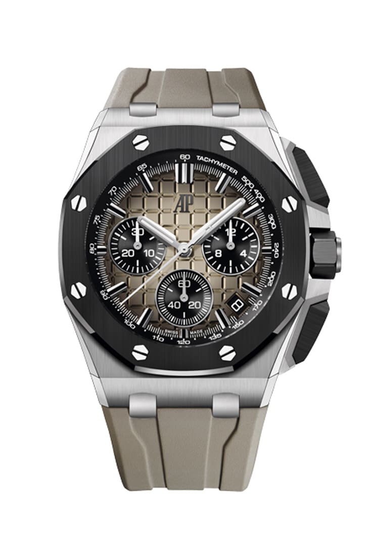 ■Royal Oak Offshore皇家橡樹離岸型自動上鍊計時碼錶,不鏽鋼、陶瓷材質,錶徑43mm,參考價:NT$ 1,384,000