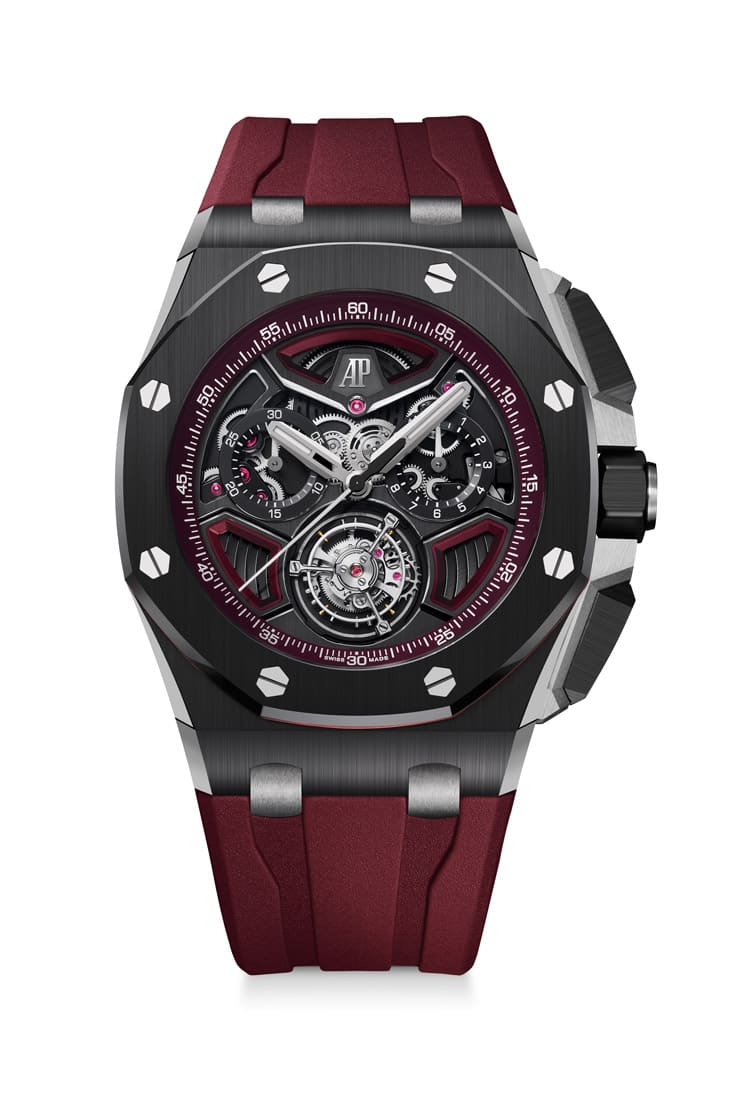 ■Royal Oak Offshore皇家橡樹離岸型自動上鍊飛行陀飛輪計時碼錶,陶瓷材質,錶徑43mm,參考價:CHF 308,100