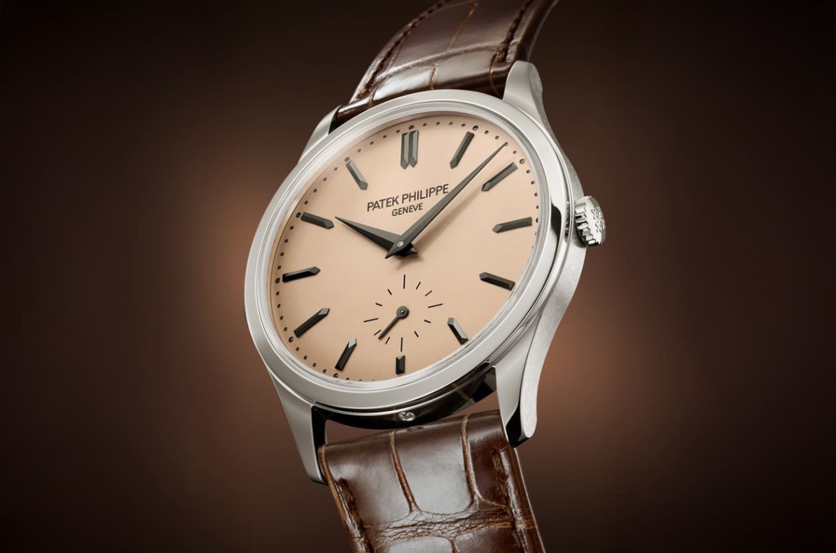 ▲6196P鉑金小三針錶回歸Calatrava純粹精神,鮭魚色面盤與消光黑指針搭配和諧,機芯優化小秒盤位置,比例優雅,是喜愛簡約經典的收藏家入門之選。