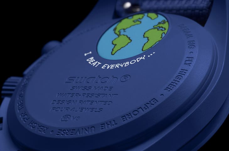 ▲背面有手錶任務標語與地球圖樣電池蓋,延續系列太空探索的視覺與故事連結。