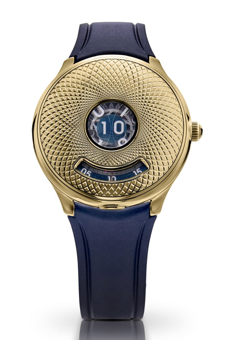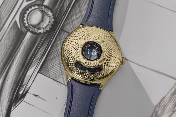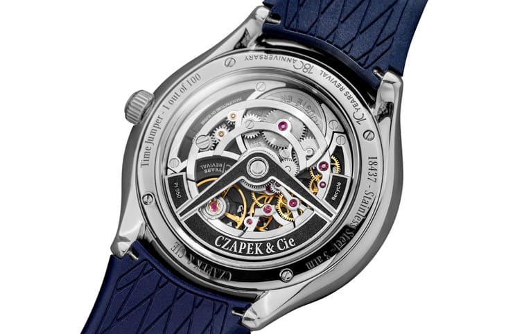 兩款Time Jumper皆配置藍色橡膠錶帶,視覺上延續了錶殼的科幻感,並提供實戴時的舒適性,要注意的是不鏽鋼版使用不鏽鋼針扣、黃金版則搭配黃金針扣,細節對應一致。品牌僅打造180枚Calibre 10.01,其中部分預留給特別訂製計畫,使這款作品的稀有性更突出。