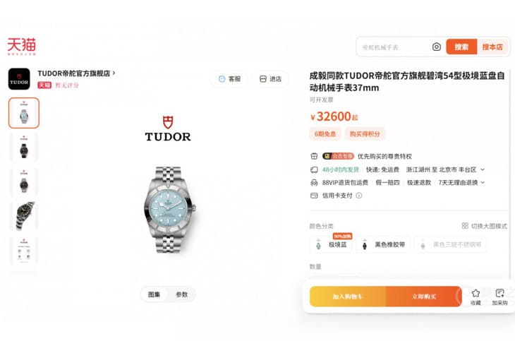 另一個值得關注的變化,來自勞力士集團旗下的帝舵。2026年初,帝舵在中國天貓開設官方旗艦店,營運主體正是勞力士上海分公司,等於首次由品牌方親自下場做線上零售,對長期依賴經銷體系的鐘錶市場來說,這是一個相當明確的風向球。