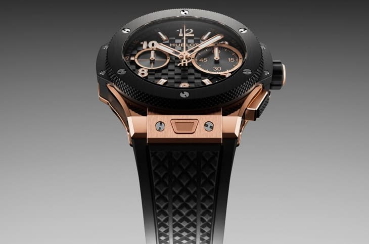 ▲柾國在官宣片中佩戴的Big Bang皇金陶瓷計時碼錶,以宇舶獨家皇金結合黑色陶瓷,展現奢華前衛的黑金視覺美學。