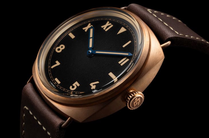 ▲PAM01729採用會隨時間生成獨特銅鏽的青銅錶殼,搭配經典加州面盤,維持早期軍用潛水錶的純粹功能美學。