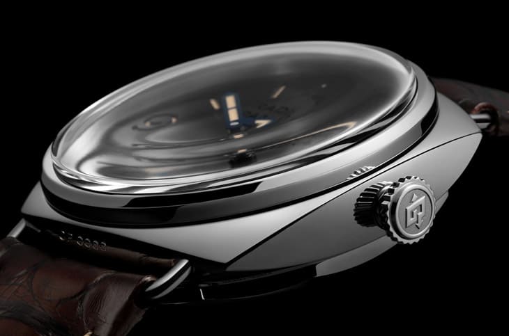 ▲PAM01730採用品牌獨家鉑金合金,硬度高、防刮耐磨,搭配圓頂鏡面,呈現復古與現代製錶技術的完美融合。