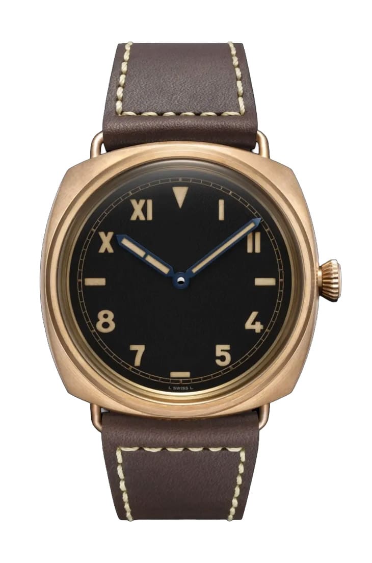 這套以「雙錶綁定」形式推出的限量組合,內容為兩款47mm的Radiomir,同樣的大器枕型輪廓,卻分別站在時間光譜的兩端。第一只Radiomir PAM01729,把焦點拉回品牌最原始的軍事根源,錶殼採用銅錫合金青銅材質,隨著佩戴時間自然氧化,會生成獨一無二的銅鏽層,這種會「變老」的材質,對沛迷來說向來具有情感意義,它會記錄生活環境、氣候與佩戴習慣,每一只都走向不同的樣貌。