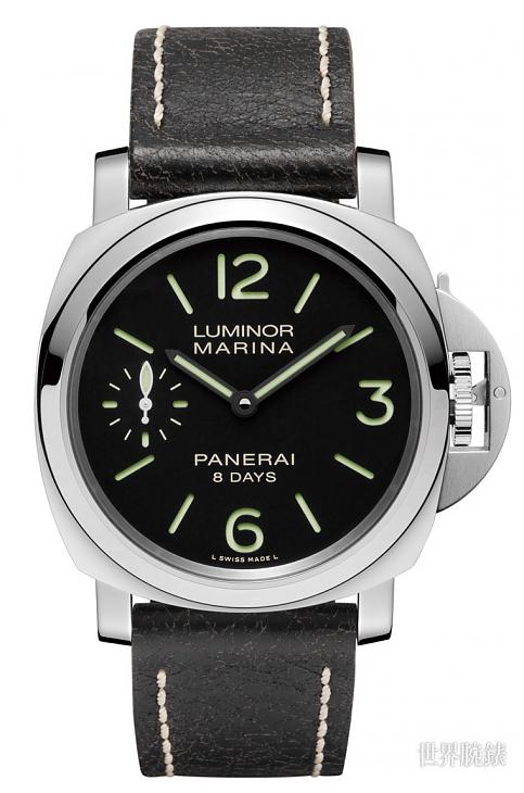 Luminor Marina 8 Days Acciaio/不鏽鋼材質/P.5000手動上鍊機芯/時、分、小秒顯示/藍寶石水晶鏡面、透明底蓋/防水300米/錶徑44mm/參考價:NT$ 214,000
