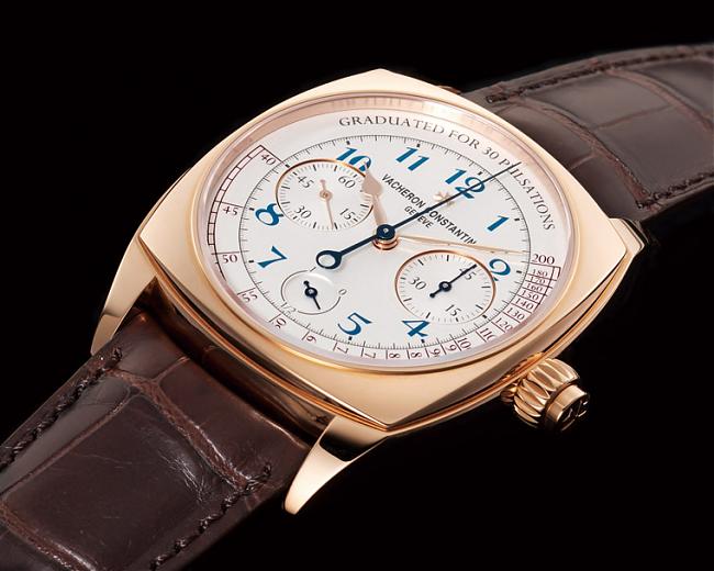 秉承原型錶款的佈局,深紅色脈搏計刻度精妙地呈現於面盤外緣,只要啟動Harmony計時碼錶的計時功能,同時探脈至第30下時停止計時,指針停止的位置就可以直接讀取面盤刻度上的脈搏頻率。在脈搏計時碼錶尚未出現之前,醫生只能通過數算病人在60秒中的脈搏跳動次數來獲取心率數據,然而這種測量方式並不完全準確;直到這種附加脈搏計刻度的計時碼錶出現才提供了快速精確的計算,由於會用到這項功能的通常只有醫療相關人員,因此又被暱稱為醫生錶。