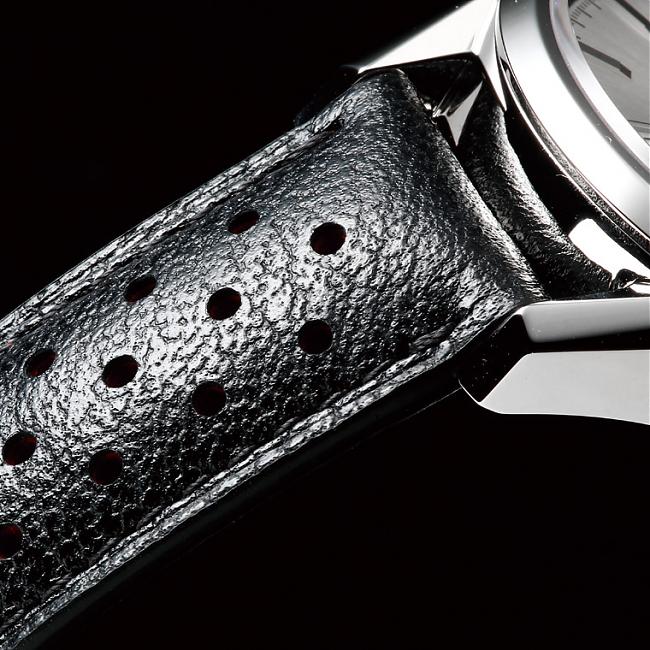 在豪雅歷年來與傑出車手的合作關係中,由賽車方向盤套啟發靈感的打孔皮質錶帶便深受專業人士的好評,一來其宛如賽車裝備的一種延伸,另一方面也因為為數眾多的孔洞可以增加皮帶的透氣性,間接使佩戴質感更為舒適且不易過敏;豪雅嚴選的牛皮錶帶以其獨特紋理增益視覺美感,並特別選用紅色皮革作為錶帶內裏,將蠢蠢欲動的競速基因低調包覆於腕上,不過透過皮帶上的穿孔,亦能隱約窺見此一特徵。