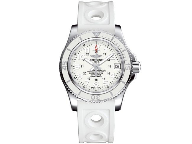 ▲ 潔白的造型是BREITLING產品中較少見的配色,其特別為女性而設計,加以全新的36mm錶徑,相當適合女性佩戴。