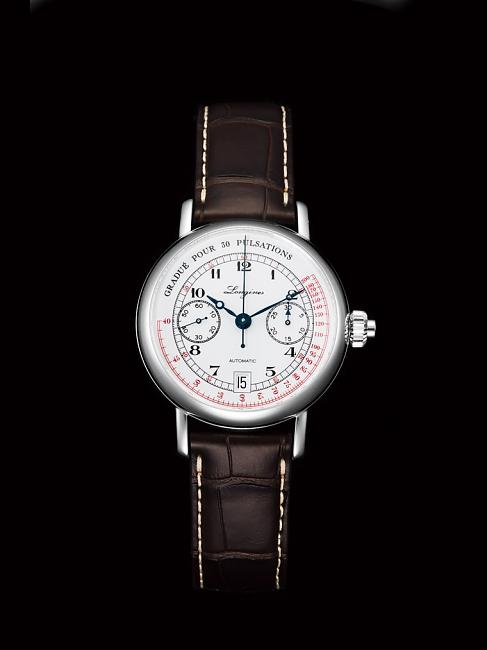 此外,擁有相同復古元素的脈搏計計時碼錶,不僅忠實於1913 年的脈搏計計時碼錶樣貌,同時也保留了'12 年當時L788.2 機芯推出時即具備的日期模組,雖然刪減了原型錶款的呼吸計刻度,也增加了另一項實用性能,並且在日期窗開設的面盤6 時位置,由分鐘刻度的黑色線條延伸出方形窗,令日期窗的加入不致打斷面盤刻度輪廓的順暢圓滑,同時也為此次復刻版注入了更多的現代意象。