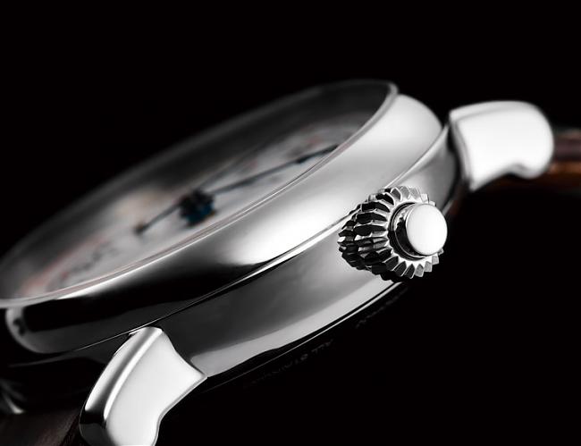 新加入的日期顯示,簡單的改變,不僅使手錶面目上的新穎特徵更加強烈,同時也進一步帶來了符合現代需求的實用功能。而開在面盤6時方位的日期窗,由於壓在軌道式分鐘刻度上方,此處浪琴表的設計將日期窗輪廓以黑線勾勒出來,使得日期窗輪廓隨著分鐘刻度的環狀路線走動,細膩的處理,也保留了面盤整體在視覺上的完整感,降低了分鐘刻度被日期窗打斷的突兀效果,成為錶款上值得玩味的一大細節,體現百年品牌的製錶赤誠情感。