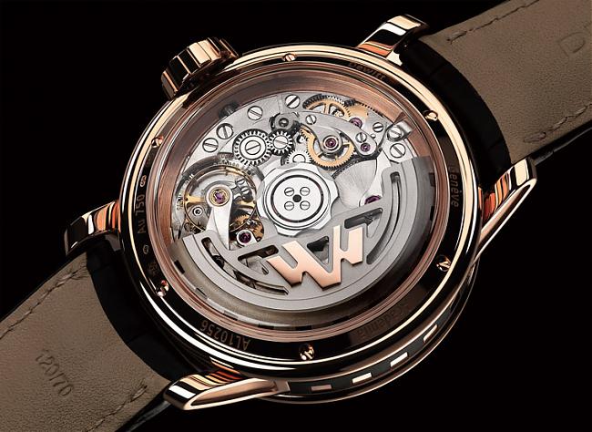 為了要呈現獨特的跳時、跳分功效,DEWITT在機芯結構的設計上經過重新規劃,增加許多零件並改良其排列方式,此枚機芯零件數因而多達384枚。