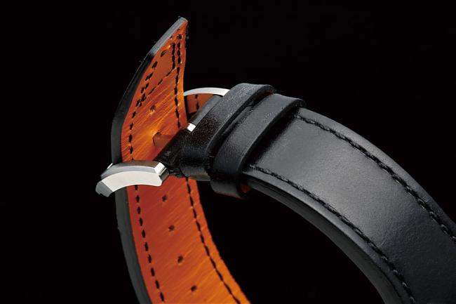 新一代飛行員還有一個重要改款就是全面換裝SANTONI的錶帶,過去由SANTONI提供的錶帶都是鱷魚皮的,這次則是以牛皮為主,雖然黑色看不太出來他們獨特的漸層染色,不過內外雙色的質感還是很好。