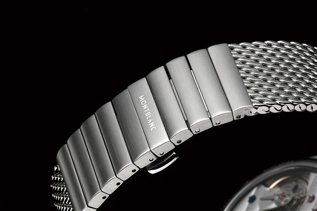 這次介紹的是米蘭帶的版本,錶帶長短的調節是靠末端可拆式的鍊節,錶扣則是蝴蝶扣。米蘭帶的一個問題就是錶帶和錶殼間的空隙會稍大,這款的算是抑制得不錯,而且這也算是米蘭帶的特色之一吧。