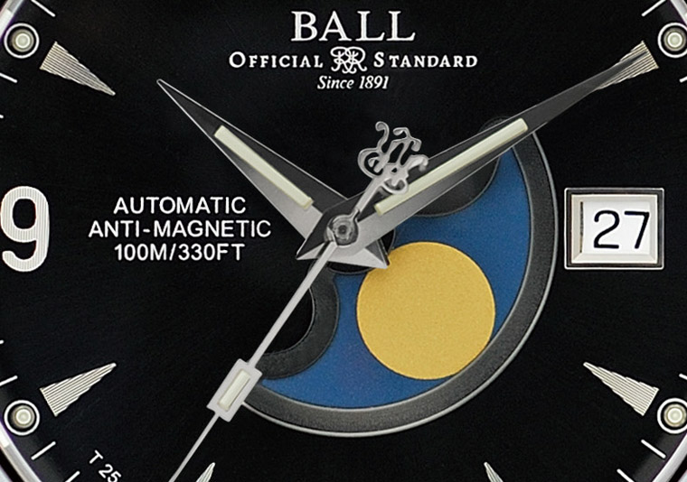BALL WATCH別開生面地將月相視窗置於面盤內圈,顛覆了月相分布鄰近12小時時標的設計觀念。