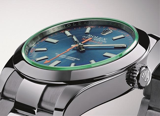 單一錶冠除普通設計外,亦有以螺紋鎖定的旋入式設計提升防水性,圖為勞力士Milgauss。