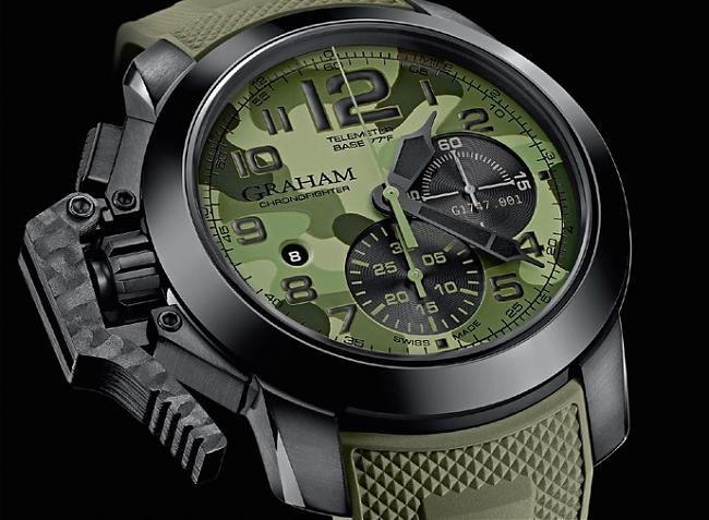 粗獷軍風是GRAHAM作品的招牌特色,其由手榴彈握把衍生的造型靈感也出現在錶冠護橋上。