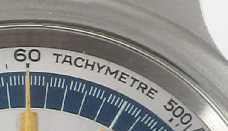 若在計時碼錶面盤外圈的刻度上看到Tachymeter或Tachymetre,表示該錶款能測量平均時速。