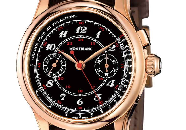 這只萬寶龍計時碼錶以30 次作為脈搏測量基準,可見不同品牌之間所採用的測量標準亦不同。