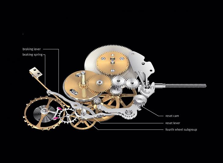 格拉蘇蒂腕錶的Cal. 58之所以具備歸零能力的停秒裝置,關鍵便在於機芯中加入一個桃形齒輪。
