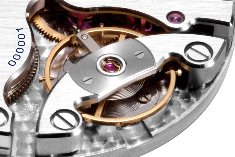 從雅典的新自製機芯基板上又可發現另一種日內瓦波紋的應用:同心圓式的環狀紋路。