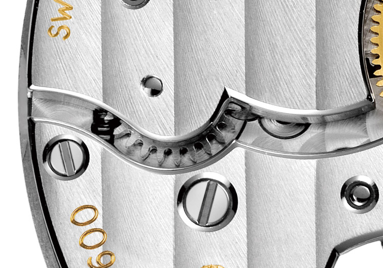萬寶龍的日內瓦波紋可與下方的MOSER機芯進行對照,同樣是採斜向紋路,不過其採取便屬於較傳統的等寬形式。