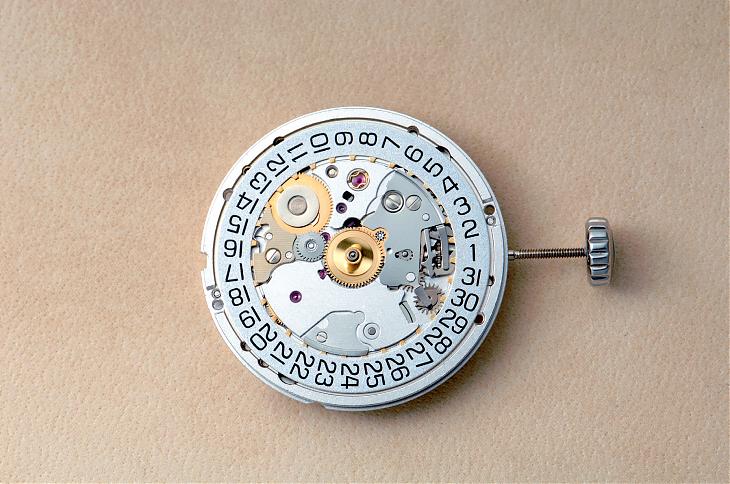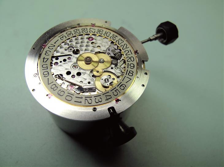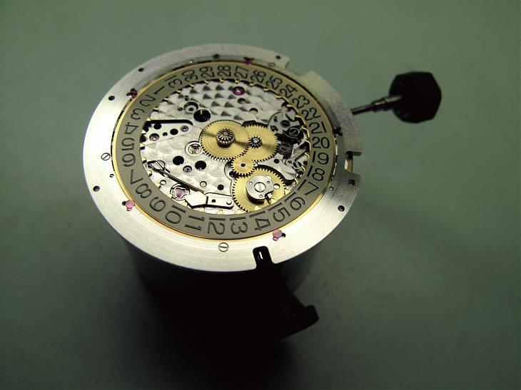 此為ETA 2892 機芯,採視窗型日曆顯示,裝上面盤時只看到當天日期,面盤下則是完整的日曆環。