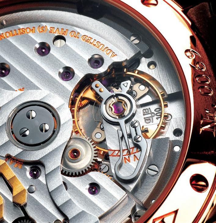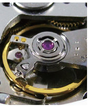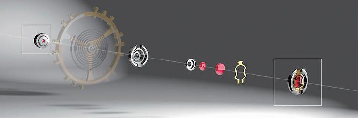 獨特的全覆蓋式彈簧片,是Paraflex 避震器最特別的地方,而擒縱輪上也有採用。