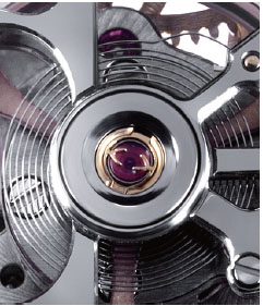 在螺旋狀游絲與圓形擺輪逐漸成為懷錶的必要配備之後,磨損率高的擺輪軸心是影響精準度與耐久性的重要因素。因此在1704 年,英國人發明以紅寶石作為齒輪軸承的設計,立即獲得鐘錶業界的認可與採用,特別是用於承載重量最高與轉速最快的擺輪軸心。所以,即便是最平價的懷錶,至少也會在擺輪軸心上下加裝紅寶石軸承,以提供一定的耐用度。由於懷錶都是放置於口袋之中,對於機芯有一定的保護程度,除非是掉落地面,否則擺輪軸心不易損壞。但是寶璣先生則在1790 年,推出了ParachuteSuspension,也就是降落傘式避震裝置。其主要的原理就是將寶石軸承座與擺輪夾板分離,並固定於一個具有C 字造型的長型簧片;每當遭遇外力衝擊時,寶石軸承座在短時間會產生位移,並由簧片吸收衝擊的力量,同時被具有彈性簧片引導回原位,因此減低擺輪軸心損壞的機率。