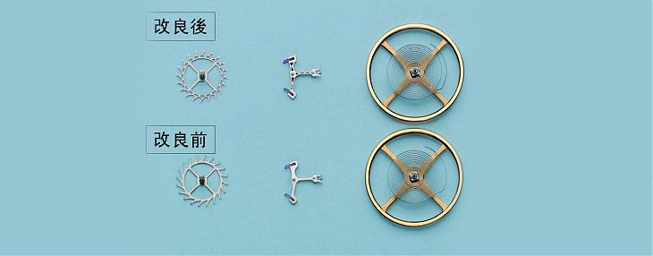由於使用高科技的微電機技術,因此擒縱輪的齒牙可改為空心設計,減輕其重量,另外擒縱叉也改為空心;對於傳遞能量時的耗損可減至最低,發揮更高的傳動效能。