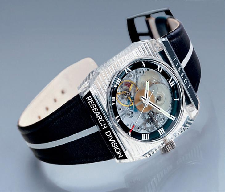 天梭在1974 年正式推出採用塑膠機芯的腕錶,造型十分獨特。