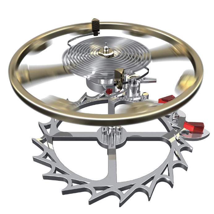 與天文台擒縱裝置一樣,擺輪的運轉同樣是接受擒縱輪的一次衝擊來傳遞能量,震頻為每小時21,600 次,比早期的天文台擒縱要高上許多,因此精準度是無庸置疑的。另外為了讓這項結構更為完善,積家特別以矽材質來製作擋桿、擒縱輪,這種質地輕、硬度高且抗具磁力的材質,配合精密的幾何運算,具備無需上油潤滑的優點。