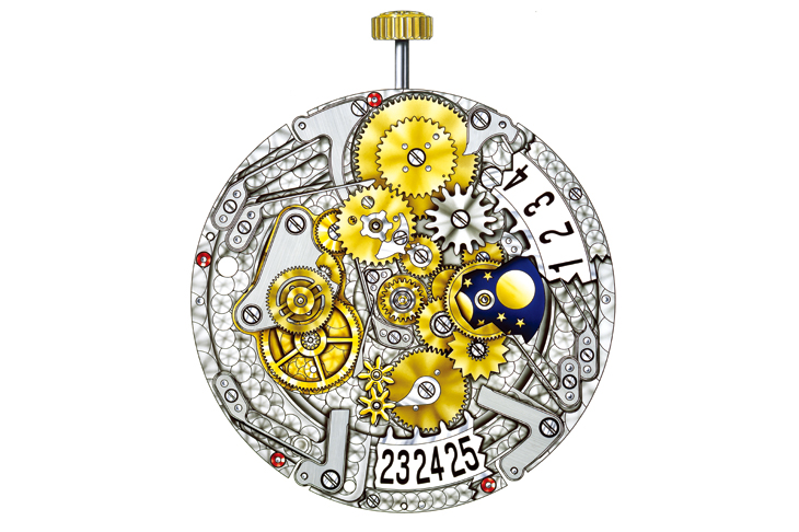 此款腕錶為年曆錶中首款於3、6、12點鐘位置使用阿拉伯數字時標的錶款,賦予腕錶面盤耳目一新的視覺效果。