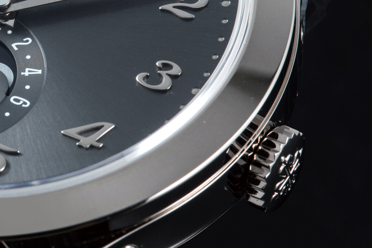 採用白金錶殼製作(2013年還推出玫瑰金版本),錶殼為品牌全新設計,錶耳與錶殼連接處相當獨特。