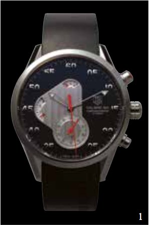 計時和走時機芯的上鍊卻是由同一個錶冠來操作:順 時針是為計時機芯上鍊,逆時針則是為走時機芯上鍊;除此之外,計時碼錶還具備飛返功能。啟動/停 止的按把較歸零按把大也很有特色。