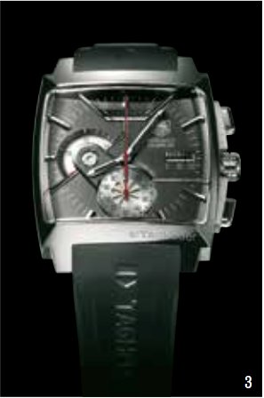 儘管連著幾年的落空多少讓人有點灰心, 但是放眼四月的2008年Basel,TAG HEUER 最讓人期待的還是Monaco V4(雖然已經有國外媒體預測 TAG HEUER 會壓到2010年的品牌150週年才會推出)。TAG HEUER的產品開 發部門曾在採訪中表示,「TAG HEUER 能很快地準備出製作原型所需的環境,並馬上把 實物作出來」;TAG HEUER 社內開發環境的友善,即使是外人也能在品牌連年的概念錶上感覺得到。市場對概念款的看法很兩極,有的人覺得那只是打高空的噱頭;編者倒是以為,品牌藉著概念款來宣傳研發實力無可厚非,但無論如何,在這樣的練習和挑戰中 的確能夠累積品牌的經驗,甚至刺激出全新的想法,那麼對整個錶界其實都是件好事。Calibre 360 的開發始於2001年七月,花 了一年完成機芯的設計圖後進入原型製作階段,開發團隊到最後共有 14 人。TAG HEUER在1916年開發出世界上第一只 1/100 秒的計時懷錶 "Mikrograph",Cal. 360 最初的發想便是要將 Mikrograph 以腕錶的尺寸重現。2004年是Carrera 四十週年,Cal. 360 最早是以週年紀念款的身分於當年夏天在日本第一次發表。發表當時錶款採用的是2006年推出的商品版的設計,白 K 金錶殼,有白面藍圈和黑面白圈二款,預定2005年春季上市。然 而到了2005年四月,TAG HEUER在Basel卻改以概念款做世界發表;概念款採用了 F1 車手蒙托亞建議的全新設計,鈦金屬錶殼, 並取消了日期顯示。產品在發表後改款並不 算稀奇,但將產品的定位改成了概念款,便意味了這項產品不會上市──至少不會以概念款上市,這麼一來Cal. 360的未來一下子變得曖昧了起來。好在 Cal. 360沒像 V4 一樣讓人一年等過一年,TAG HEUER 在2006年的Basel 上正式推出了 Cal. 360的商品版,採用2004年日本發表的設計,玫瑰金錶殼,限量500只;除此之外,TAG HEUER還加碼多發表 了一款 Monaco Calibre 360 LS,設計接近V4的未來風,而且又是概念款,在兌現了一張支票的同時馬上作出下一個承諾。不管 Monaco Cal. 360會不會有上市的一天,無論如何TAG HEUER在研發上的韌性都已經讓人留下了深刻的印象。