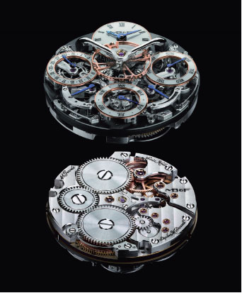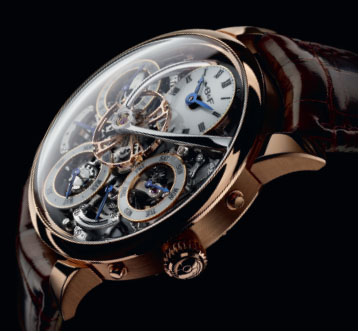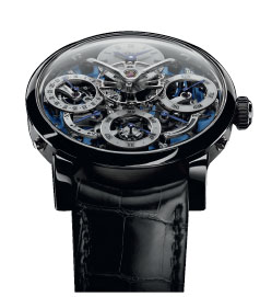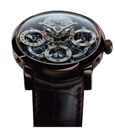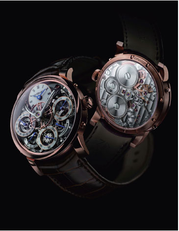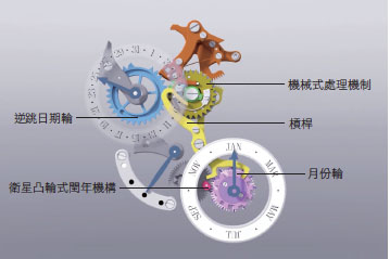 鉑金材質/手動上鍊機芯/時、分、逆跳日期、月份、星期/萬年曆功能/動力儲存顯示/藍寶石水晶鏡面/防水30米/錶徑44mm/限量25只