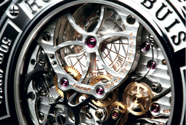 編者在本誌五十一期曾特筆報導過ROGER DUBUIS豪爵的近況──尤其是關於他們和Richemont Group歷峰集團合作後的動向。當時尚在2008年錶展前夕,對於豪爵的改變將會怎樣影響他們這次錶展的表現編者心中自然有許多想像;如今錶展已經在四月落幕,綜觀豪爵2008年的表現仍然不失精彩, 幾枚新機芯的設計兼顧美感和原創性,自有其可觀之處;然而吹毛求疵如編者心裡卻難免有疙瘩,因為這幾枚機芯並非全新,而都是既有機芯的鏤空版,跟之前連年全新機芯的盛況相比好像稍嫌冷清。其實有心人大可以不用多作聯想,一間體質健康的錶廠本來就不用一直推出全新機芯,只要擁有若干基礎基礎機芯加上幾種主要功能變化,再有幾款話題錶壓軸,整個產品線就很完整了,產品線穩定了以後就應該將開發轉移到改款和 概念錶等特殊款上;豪爵二十八枚機芯的陣 容其實已經接近飽和了,一味地開發全新機芯反而會造成成本和行銷的壓力,從此來 看豪爵2008年的表現正是產品線成熟的表現。其實錶迷會這麼期待豪爵的新機芯倒也無可厚非,追根究柢還是他們在2006年一口氣發表六枚機芯的氣魄太嚇人了。然而那次發表的意義還不只是在數量上而已,這六 枚機芯包括了從基礎機芯、計時碼錶、追針計時碼錶到陀飛輪,幾乎可以說是一次發表 了一個完整的產品線;其中Cal. RD77、78 和79乃是一個獨立的家族,分別是基礎機芯、 加裝了計時模組的計時碼錶、以及加裝了追針模組的追針計時碼錶,而 RD78更是近幾年的計時機芯名作,編者尤其印象深刻。在 2008年以前豪爵的機芯設計走的是古典風, 不論是結構還是板路都算保守,RD78 也不例外;然而整體古典,細節上卻不乏新意,像是歸零機構的設計等等,讓整枚機芯新中有陳、陳中有新。不過RD78真正動人的地方卻是它作為一枚機芯的基本工;仔細的切削和打磨,讓每個零件的作動都確實敏銳,那種犀利的質感是在你一按下計時按把的時候就能感覺得到的,真正高級的質感。