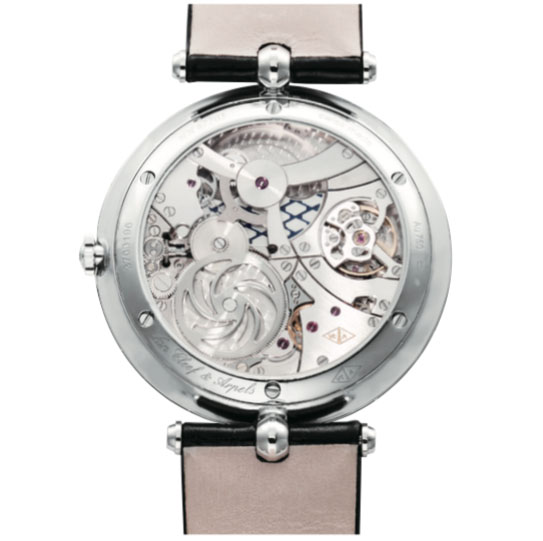 決定要介紹這枚的理由還有一點,除了跳時、 逆跳的複雜功能之外,這款在基礎性能上也有 不少值得討論之處,甚至具備了發展為基礎機 芯的潛力,而且這些基本設定有不少是由梵克雅寶主動提出,相對於過去他們都只專注於設 計、機械結構則完全交付給合作廠商的態度, 這次品牌明確地表現出對機構方面的想法,凡 此都讓這枚機芯顯得意義特殊,也引起了我們 興趣。