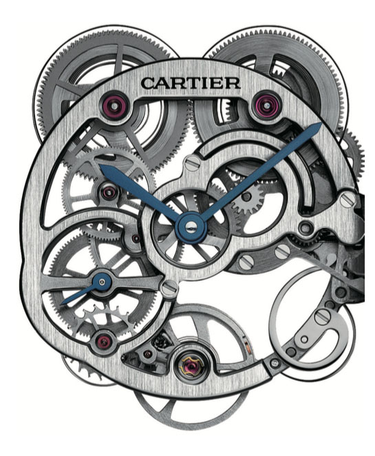 2009年卡地亞推出了原生的鏤空機芯9611MC,接下來的幾年卡地亞每年都有推出9611的衍生型號,這些看似不相干的機芯其實都是將9611打散重新排列,輪系裡的零件都大同小異,但基板夾板的部分則是全新設計,由此創造出許多「視覺系」的機芯外觀,堪稱現代專業製錶中兼具工業化和藝術化的極致範例。
