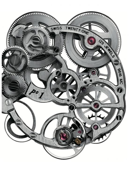 接下來的幾年卡地亞每年都有推出9611的衍生型號,也就是所謂的961X系列,有的只是單純將同一枚機芯轉用到其他系列的錶殼,或許會改採不同的表面處理,另編不同的型號,但基本上變化不大,而有的則是會將整枚機芯打散重新排列,輪系裡的零件都大同小異,但基板夾板的部分則是全新設計,由此創造出許多「視覺系」的機芯外觀,比如說整組基板夾板就是一顆鏤空的豹子頭的9613(2010年初出)、龍形的9617(2014年)、還有2015年最新的鏤空Crash9618,這些看似不相干的機芯其實都是利用同樣的基礎輪系、透過相同的編輯手法所創制出來的延伸型號,可以說是現代專業製錶中兼具工業化和藝術化的極致範例。