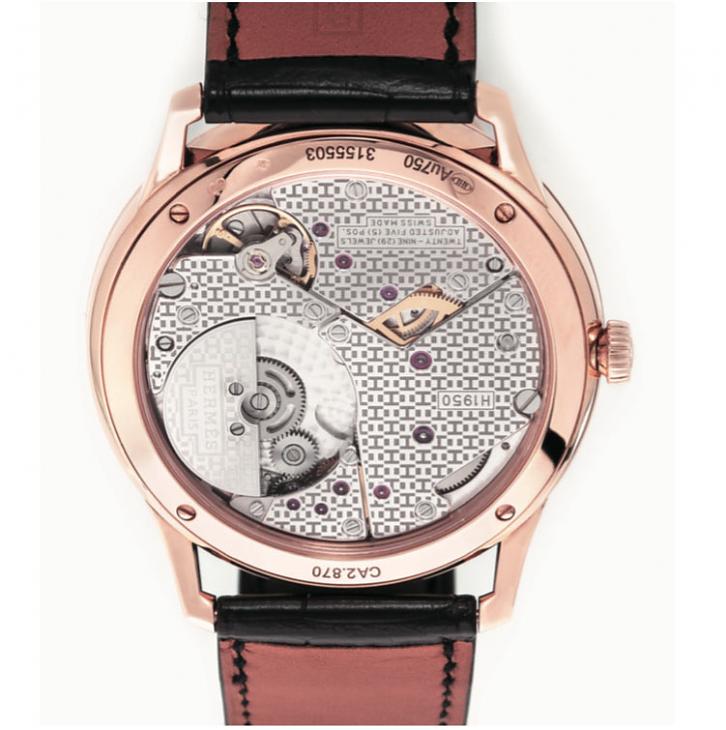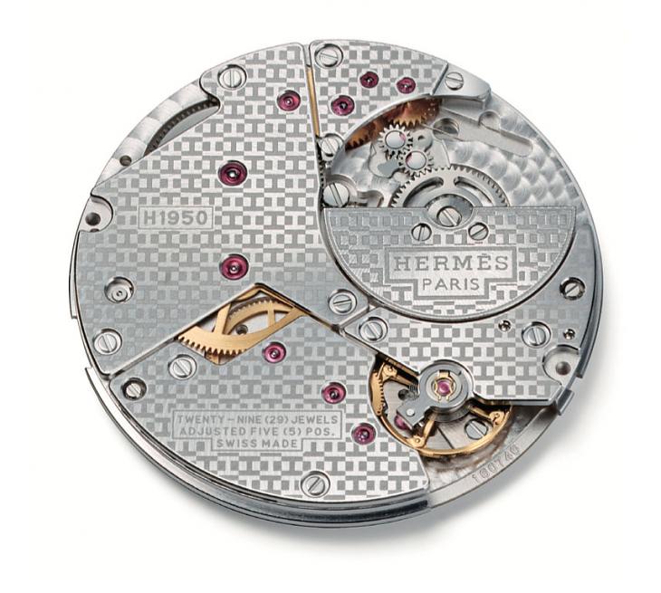 HERMÈS愛馬仕2015年推出了全新系列Slimd'Hermes,顧名思義,新系列主打的就是薄,而為了滿足這一系錶款的規格,他們也推出了新型號的基礎機芯H1950。H1950是一枚微型自動盤機芯,如前所述,這枚機芯利用微型自動盤的手段將厚度收到只有2.6mm,成就了新系列錶款薄型的定位,也為近期的微型自動盤潮流再添了一名生力軍。
