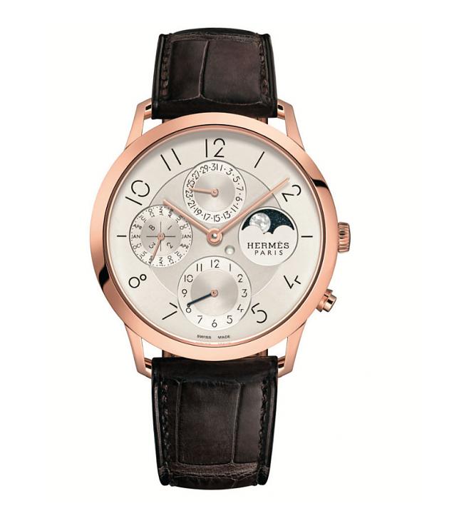 H1950一推出就大規模地套用在新系列,Slimd'Hermes的機械錶裝的全部都是H1950和它的修改型號,除了小三針之外還有一批藝術錶款的兩針版本,最複雜的則加裝萬年曆模組。值得一提的是這個萬年曆模組是由Agenhor製作的,嚴格來說這個萬年曆並沒有展現出太多Agenhor的特色,雖然模組本身1.4mm的厚度很厲害,不過看不出非得找Agenhor來做不可的理由,或許這裡展現出來的是愛馬仕自時間暫停以來跟他們建立的合作默契。