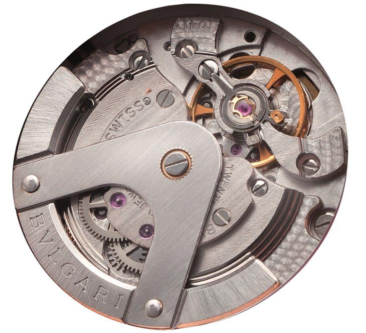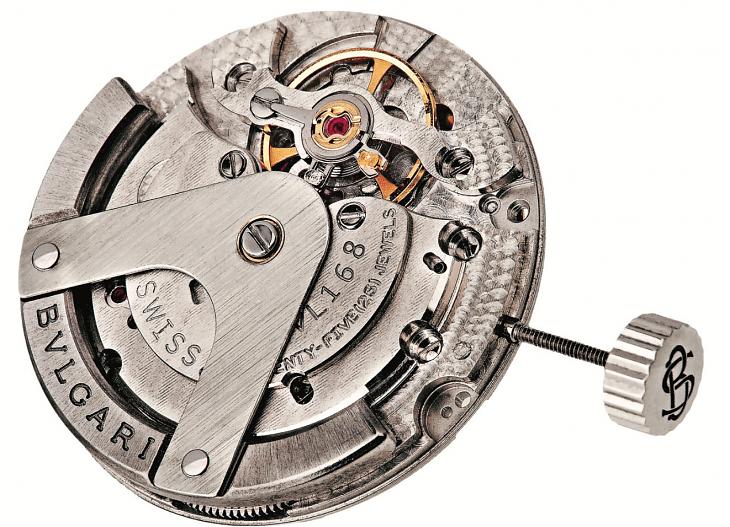10 年 BVLGARI 寶格麗推出自製機芯了。像這 樣的開場白如今看來還真是一點吸引力都沒有呢。差不多從 2005 年開始,連續四、五年每年 都有幾個牌子推出「第一枚自製機芯」;本單元 對這一類的新聞向來都很熱心,基本立場也很 明確(原則上是樂觀其成),只是這麼多年討論 下來,我想不論是我們記者還是讀者應該都有 點疲乏了。不過 '10 年不太一樣。2010 年至少 有四家主要品牌推出第一枚自製機芯;四個牌 子說多不多,有趣的是這幾個牌子都頗具指標 性,尤其是在自製機芯這個議題上。其中之一 就是寶格麗的 Cal. BVL 168。'10 年寶格麗最大的新聞應該還是 DANIEL ROTH 和 GERARD GENTA 正式被併到寶格麗品牌(而非 集團)旗下,不過這件事和推出自製機芯其實 互為表裡,在這裡不妨一起討論。2008 年寶格 麗推出了計時機芯 Calibro 303,當時這枚機芯也 號稱是寶格麗的第一枚自製機芯,不過 Calibro 303 其實和積家的 Cal. 751 一樣都是以 FP 1185 為基礎改制的,算起來這枚 BVL 168 才是他們的 第一枚自製機芯。很長的一段時間以來,寶格 麗製錶的專業程度一直處在一個微妙的地位: 一方面他們擁有 DR & GG 這個超級研發中心,各 種複雜功能寶格麗想要的他們幾乎都做得出來, 然而另一方面他們的基礎機芯卻始終是由 GP、 Swatch Group 提供的;其實專精於高階複雜功能 的錶廠採用別家的基礎機芯所在多有,過去我 們也都不以為病,不過對寶格麗來說,DR & GG 的萬年曆、逆跳錶用起人家的機芯固然可以心安理得,但是寶格麗自己的主要產品卻都是三 針、計時碼錶等簡單功能,也就是說 DR & GG 的 技術優勢在寶格麗自家發揮的其實很有限。早在 2007、08 年左右 DR & GG 就提過要推出 自製機芯,當初聽說的時候就想當然爾地猜測 這枚機芯應該是集團旗下的三個牌子共用,想 不到如今三家合體,也沒什麼共用不共用的問 題了。DR & GG 併入寶格麗讓品牌中複雜功能的 產品比例一夕暴增,自製基礎機芯的推出則可 望逐漸洗去基本產品中的通用機芯,如此高階 / 基礎雙管齊下,2010 年寶格麗產品的技術密度 可以說創下了前所未有的新高。考慮到未來可以直接裝在現行搭載 通用機芯的款式上,很多新機芯都會 以常用的通用機芯作為規格的根據。