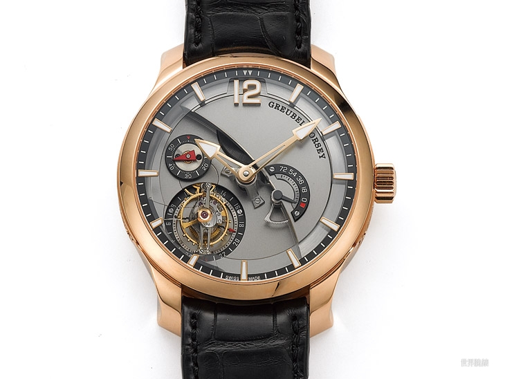 ▲ 18K玫瑰金材質 / GF 01c手上鍊機芯 / 時、分、小秒顯示 / 動力儲存顯示、傾斜式24秒陀飛輪裝置 / 鱷魚皮錶帶、折疊扣 / 藍寶石水晶鏡面、螺絲固定式透明底蓋 / 防水30米 / 查詢電話:(02)2345-3553